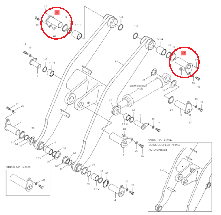 Применение: основания стрелы Hyundai HL770-7A